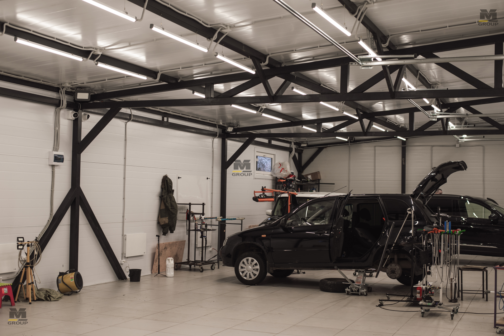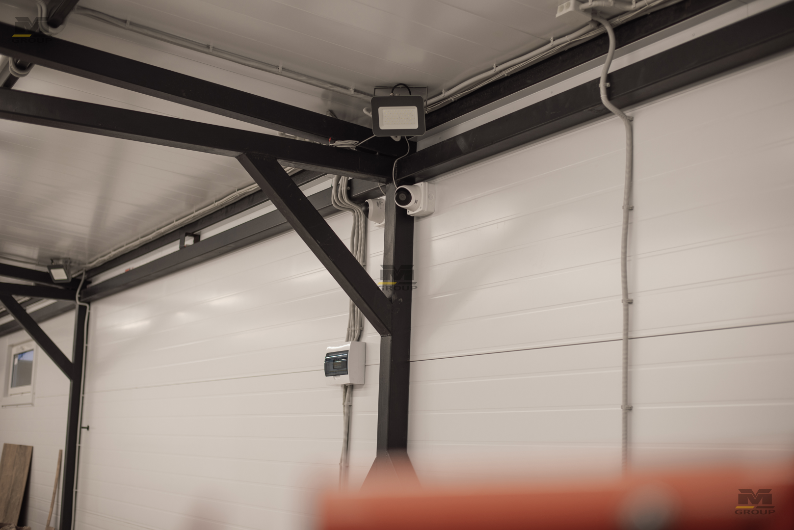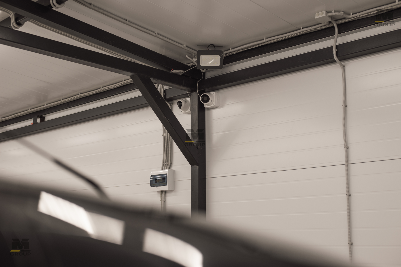 Установить 5 цифровых камер видеонаблюдения, 4 внутри ремонтного цеха и 1 на фасад для контроля за парковкой и зоной въезда. Обеспечить цветное изображение с уличной камеры в ночных условиях. Проложить кабель для будующей установки WiFi точки доступа в соседнем цехе.