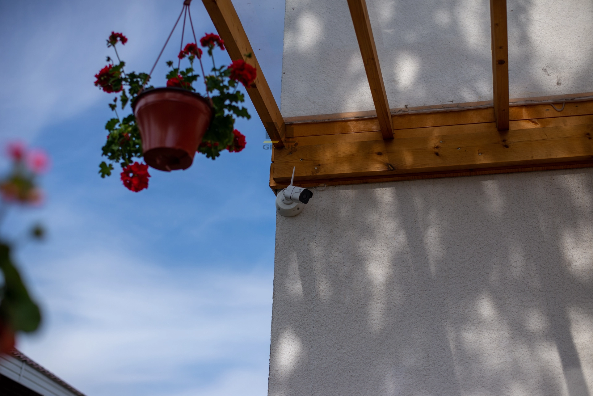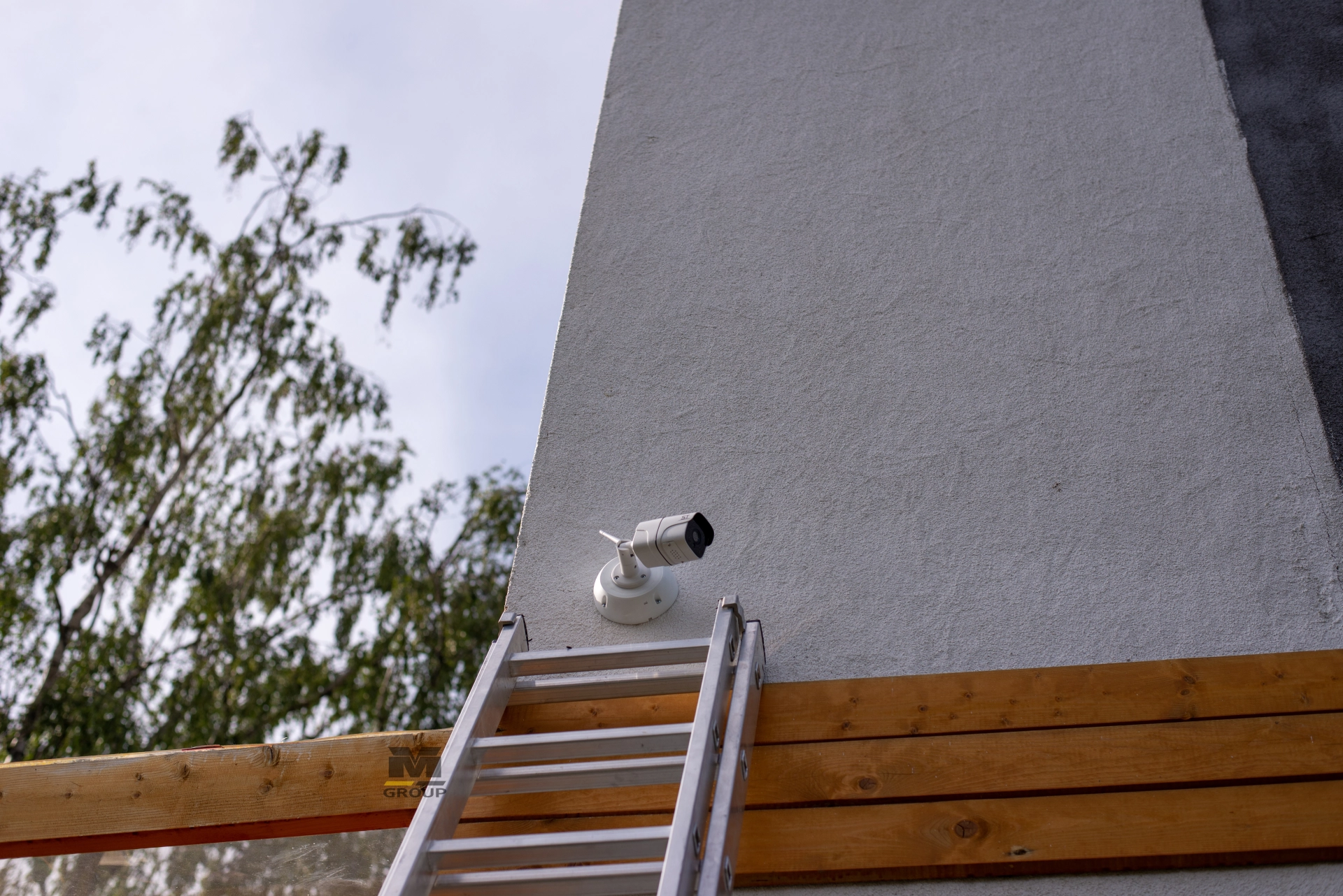 Первым делом были настроены камеры на подключение к существующей WiFi-сети заказчика, далее камеры с установленными картами памяти были установлены на свои места на фасаде дома. Нашим специалистам была поставлена задача - подключить камеры к электрической сети непосредственно в ближайшие к местам установки камер розетки.